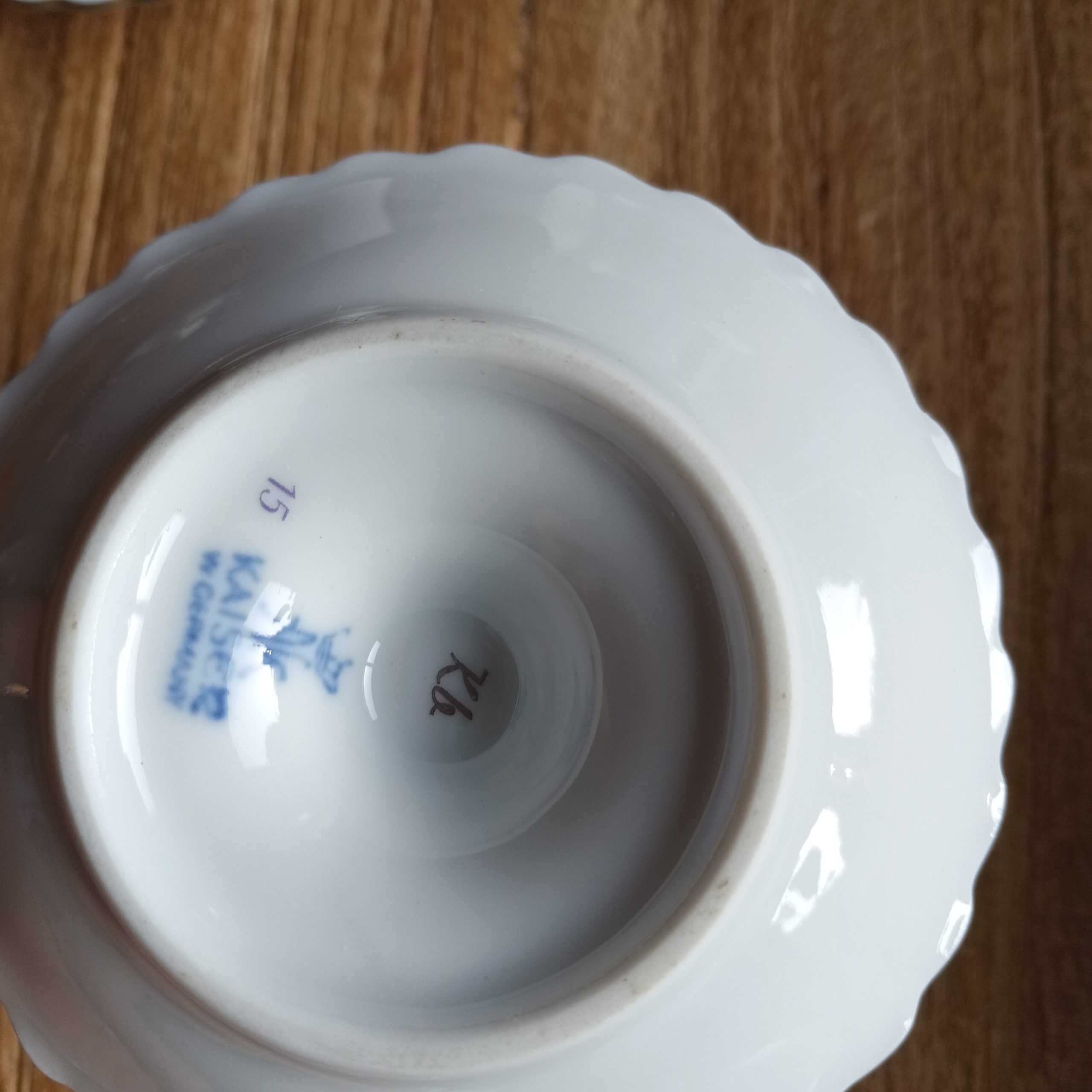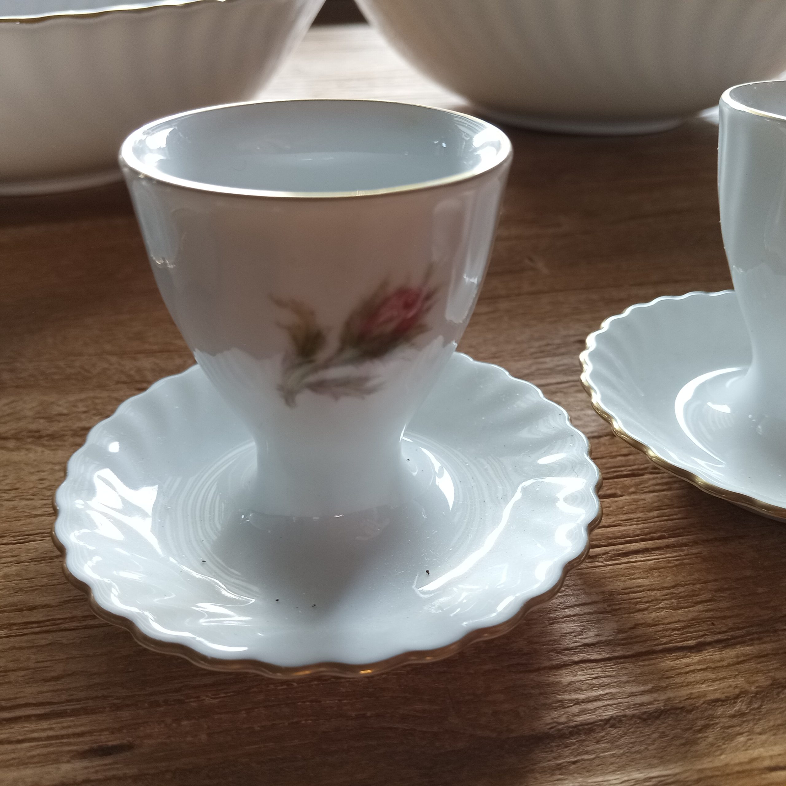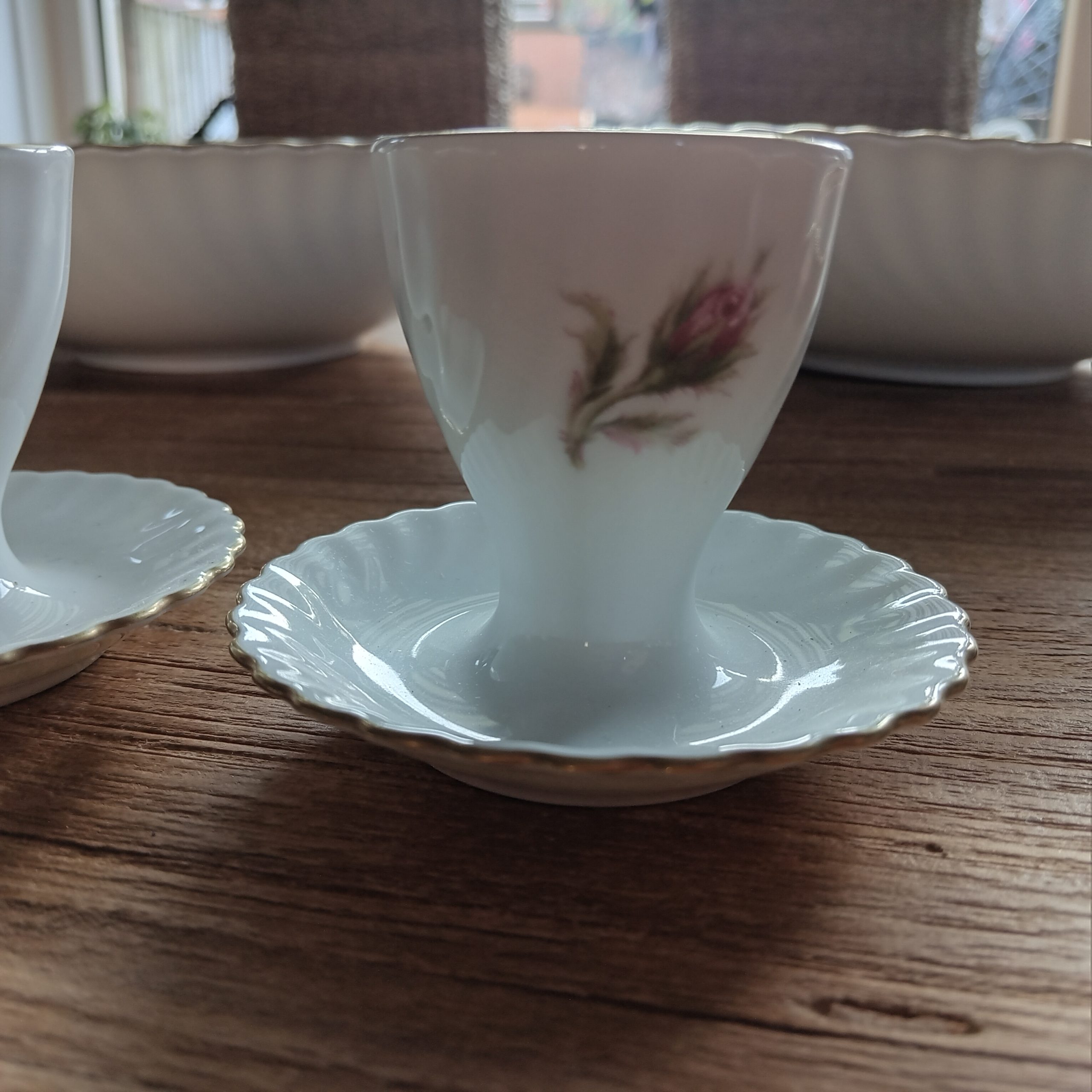 Vintage servies van AK Kaiser ‘Moosrose’ roze rozen met goud geschulpte rand
