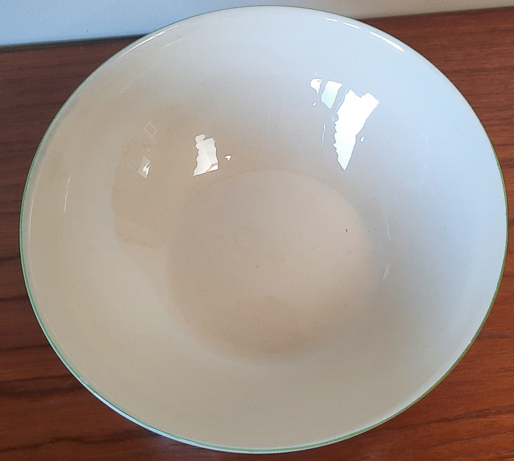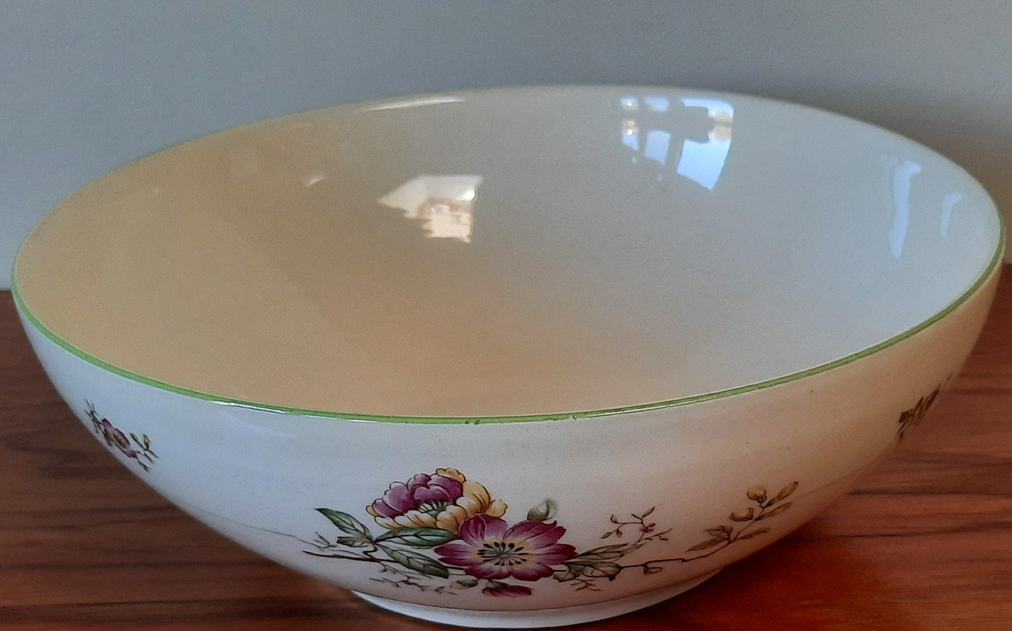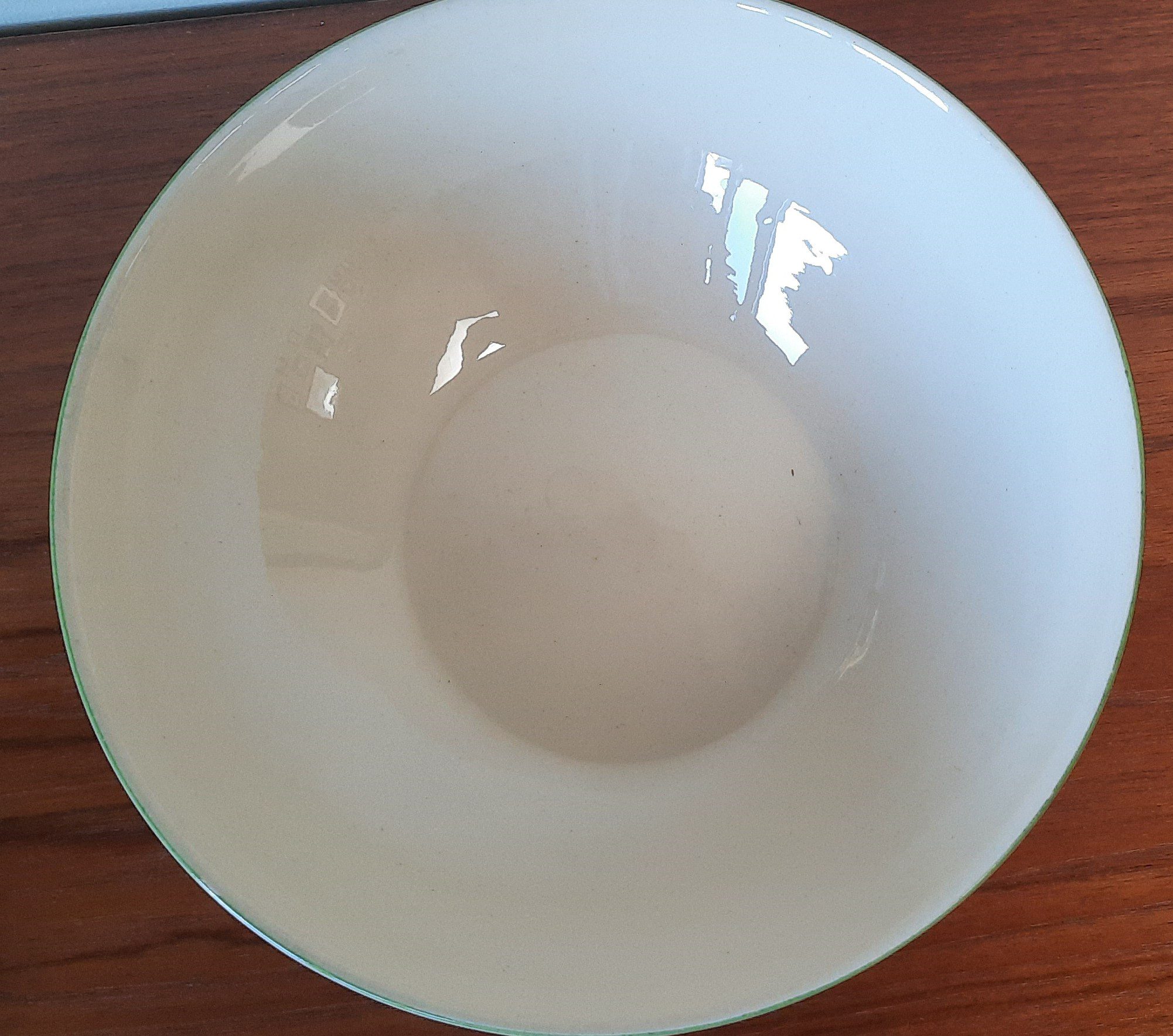 schaal Roomwit met groene bies en decor van wilde roze rozen