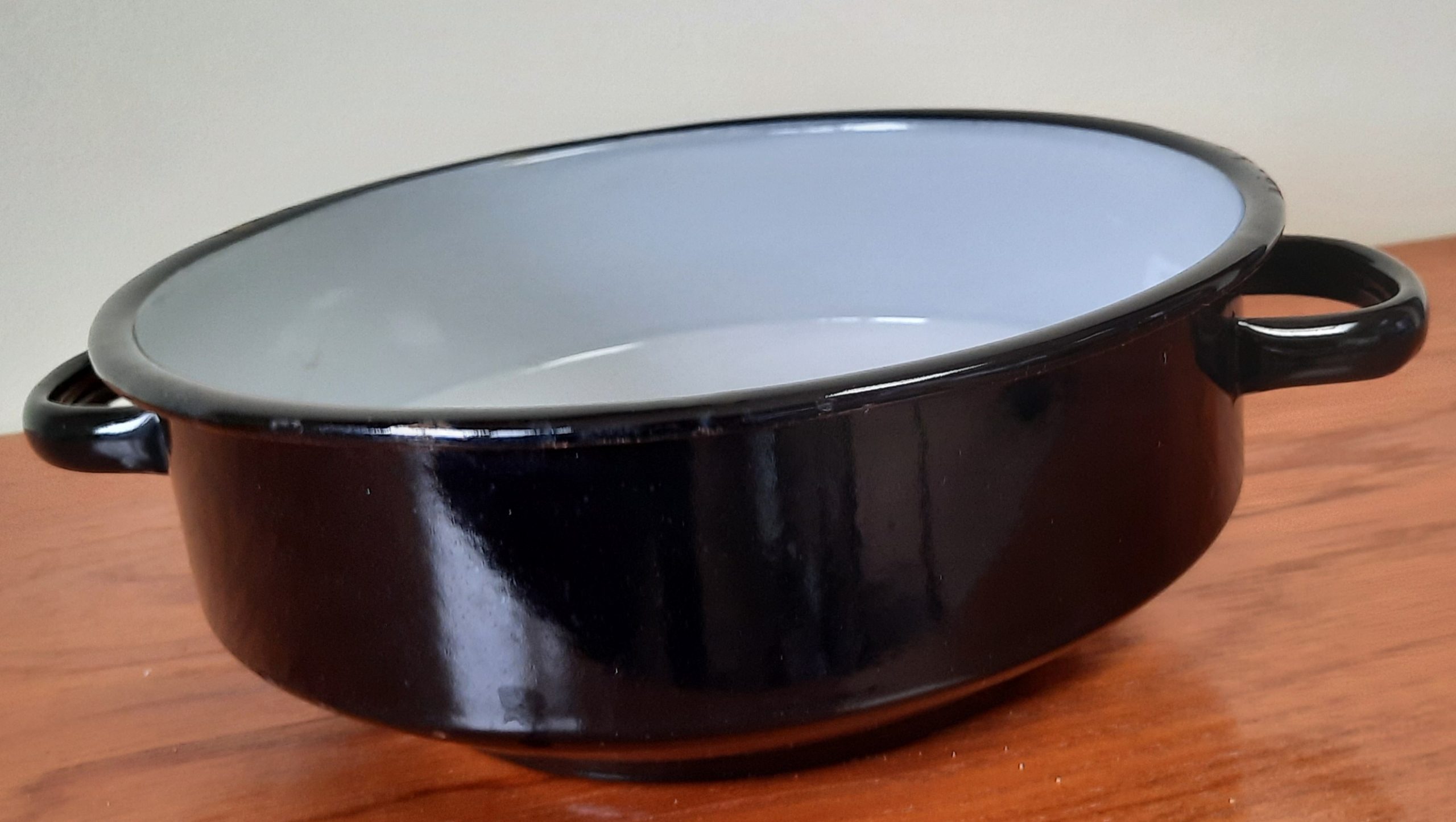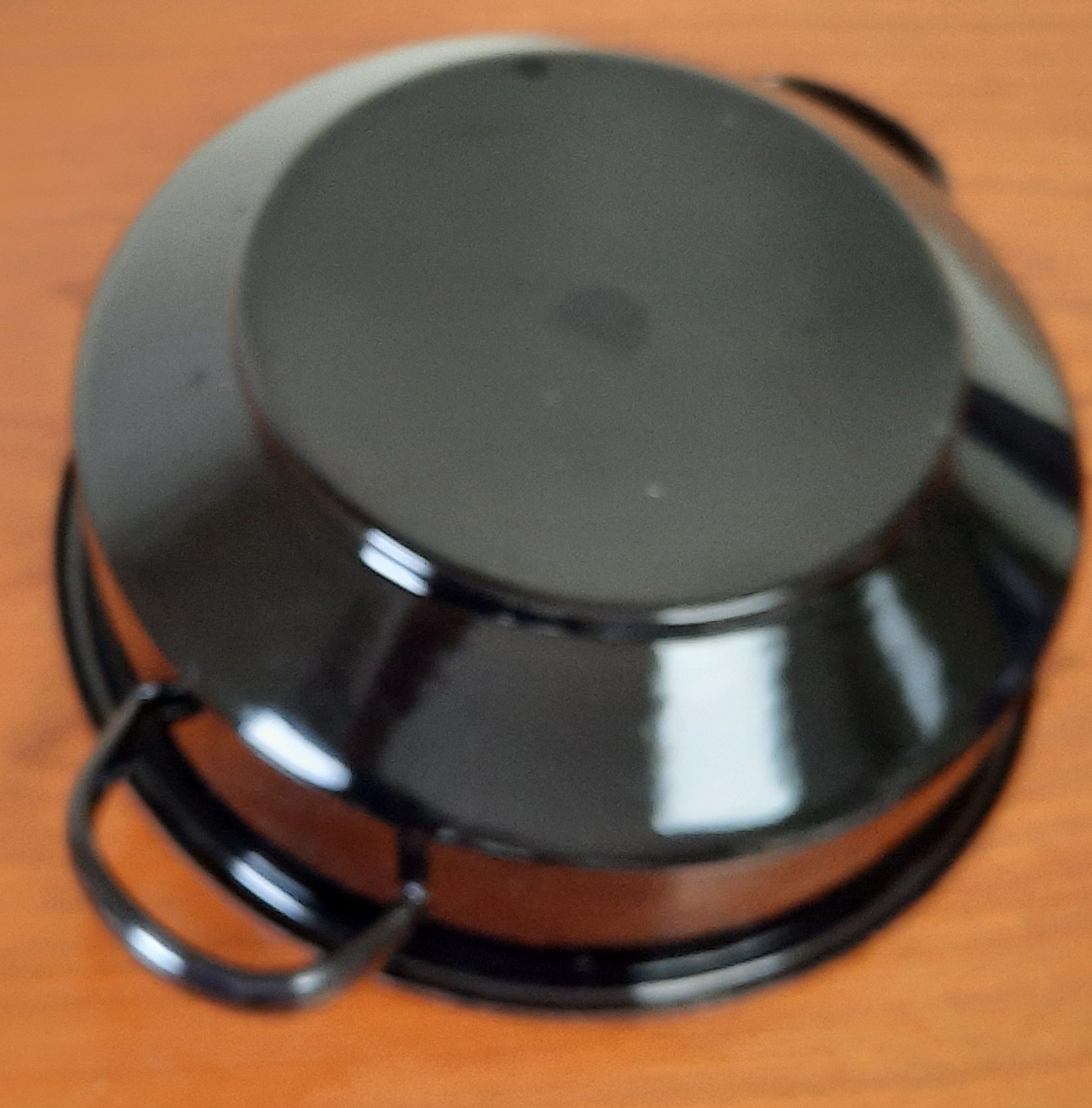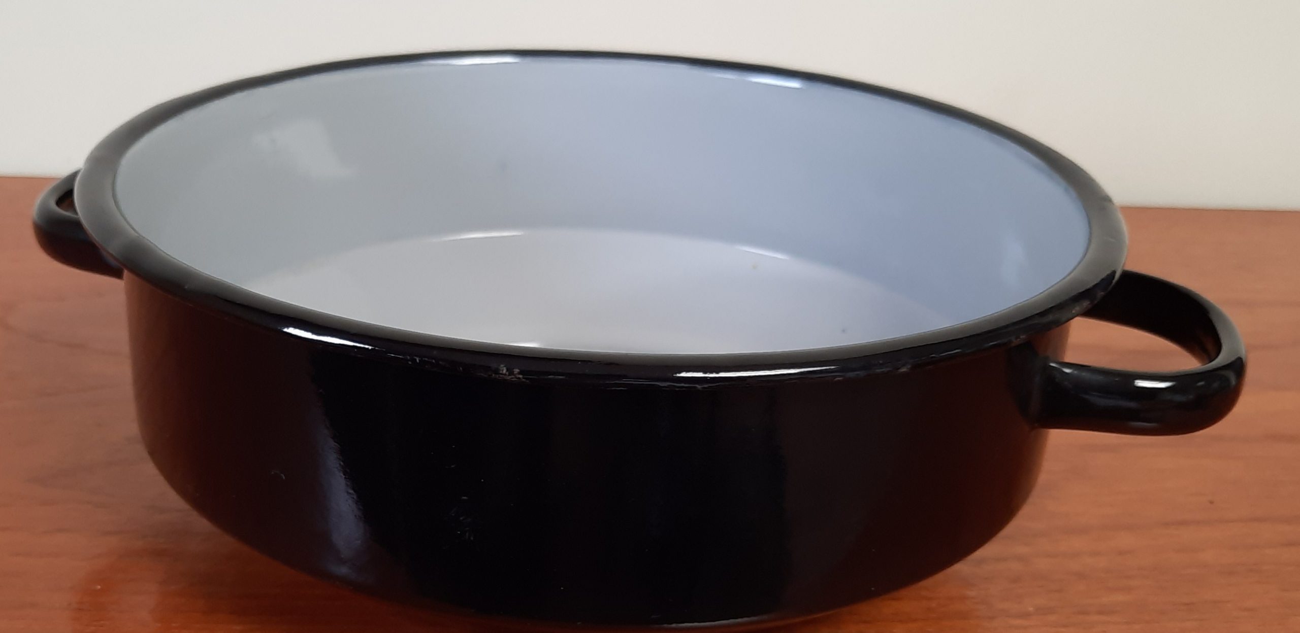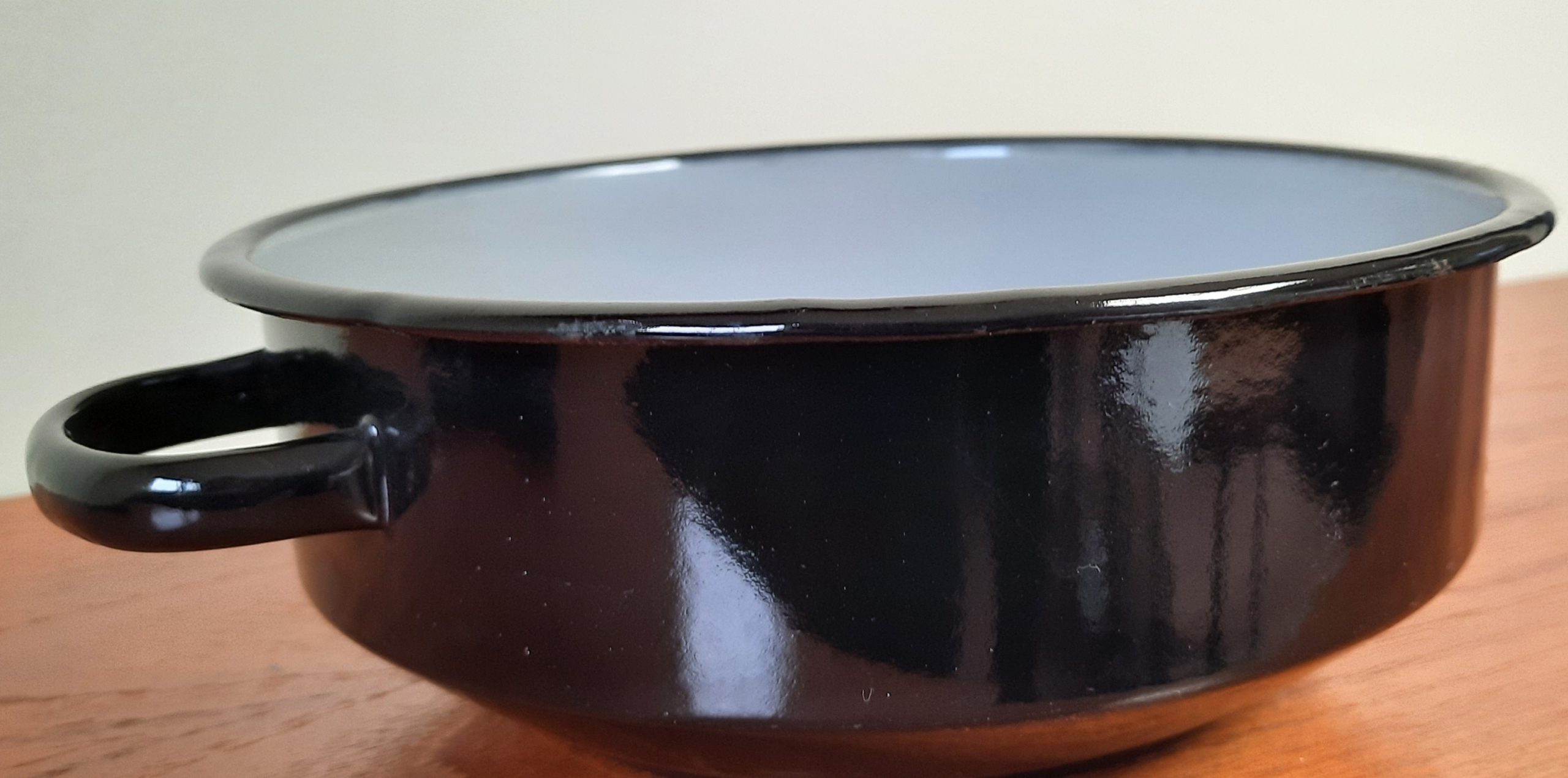Zwarte schaal, aan de binnenkant grijs doorsnee 22 cm hoogte 8 cm