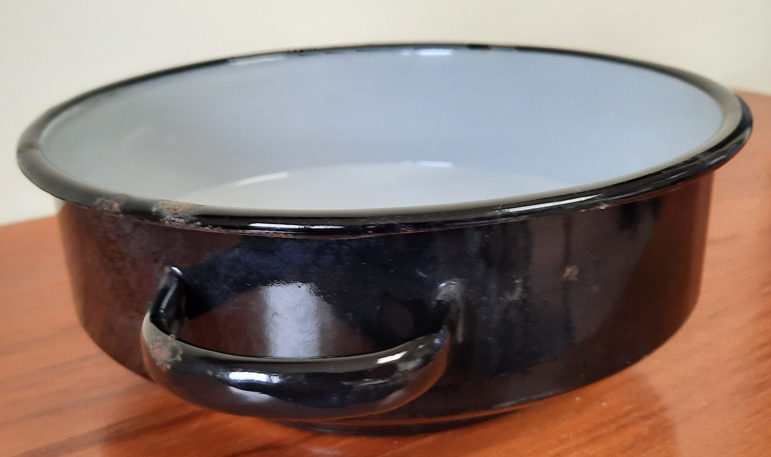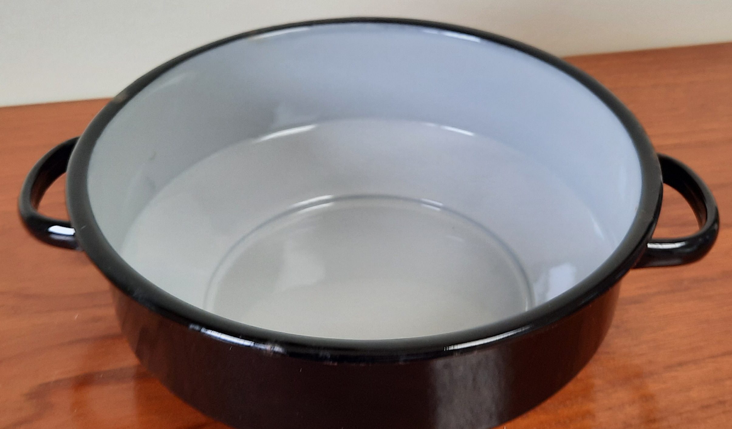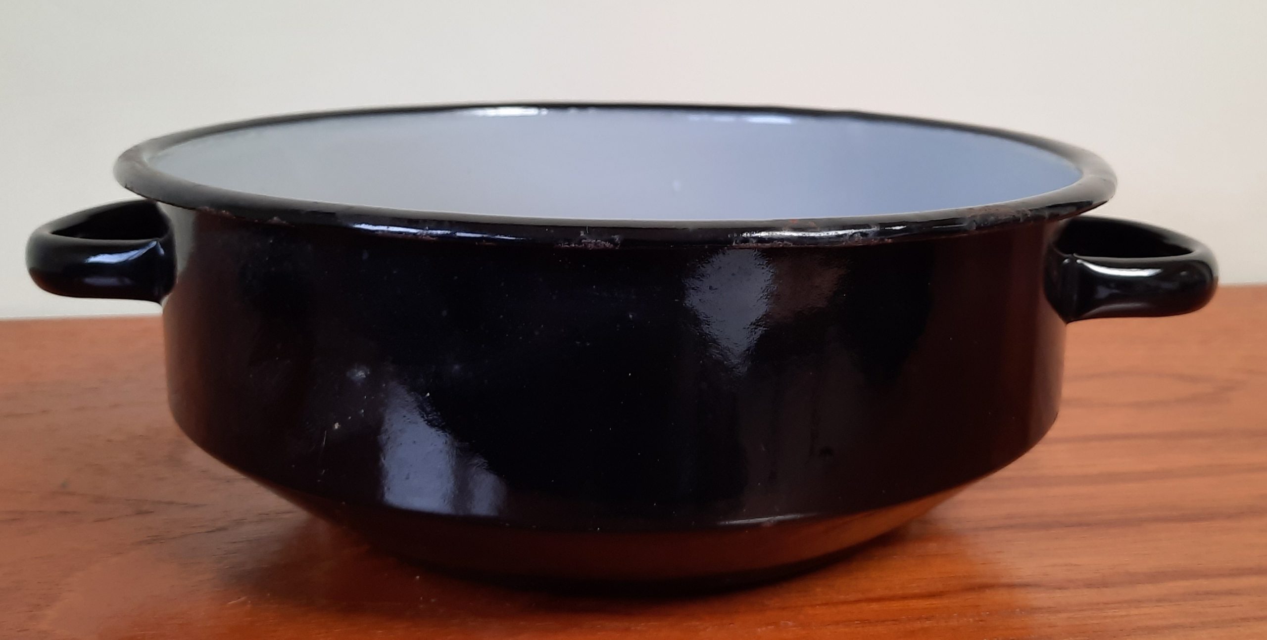 Zwarte schaal, aan de binnenkant grijs doorsnee 22 cm hoogte 8 cm
