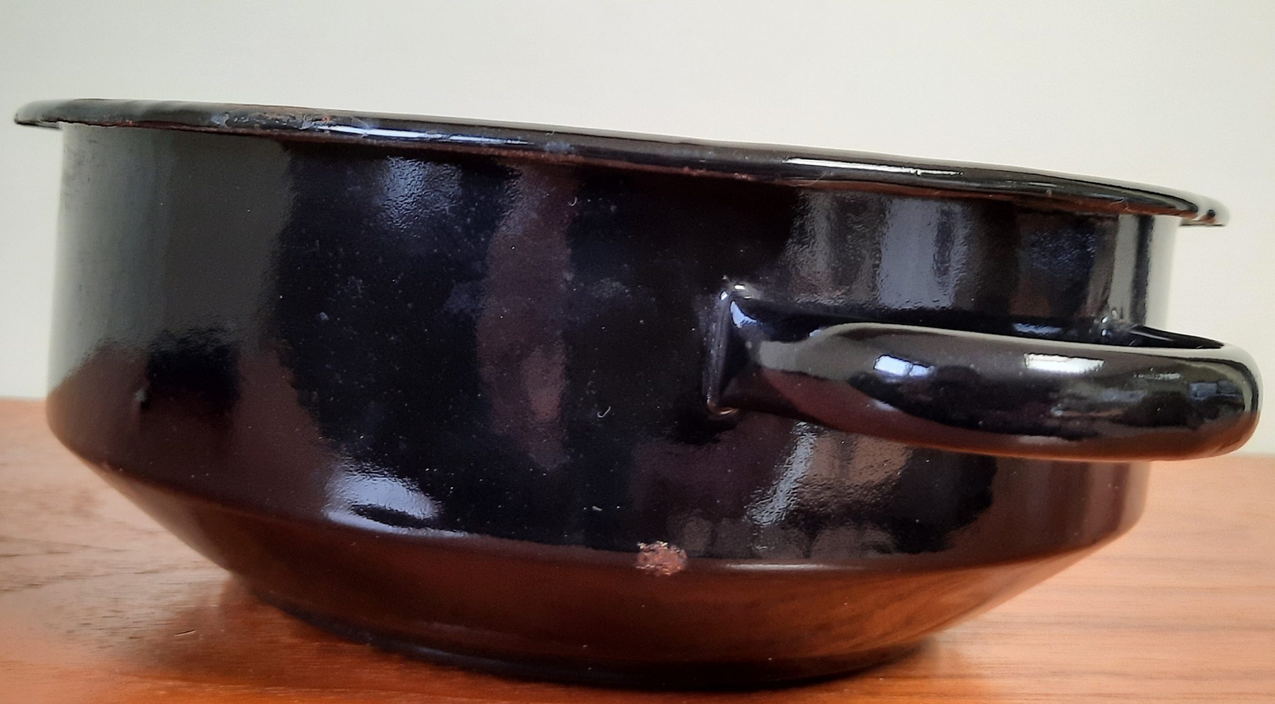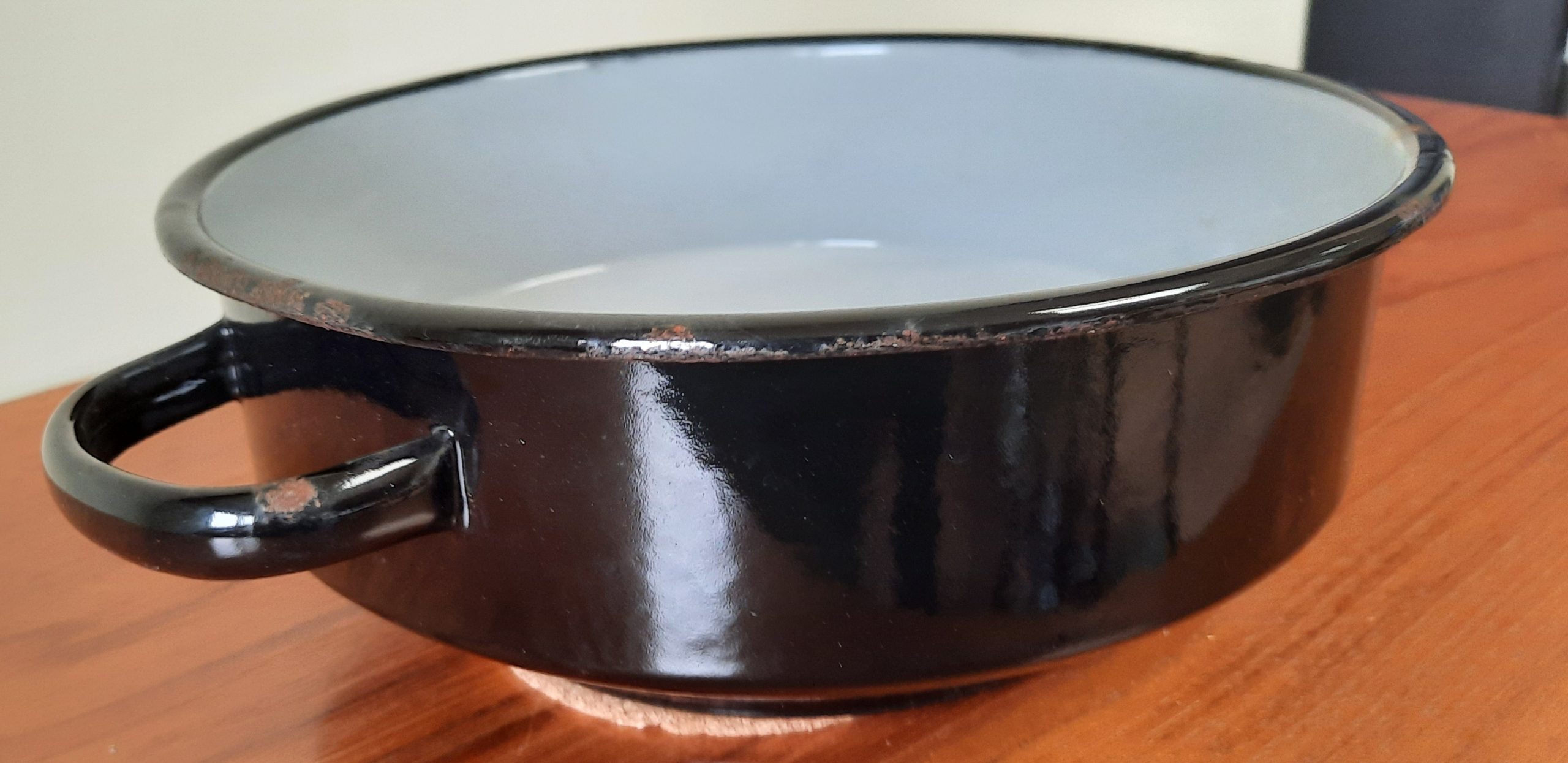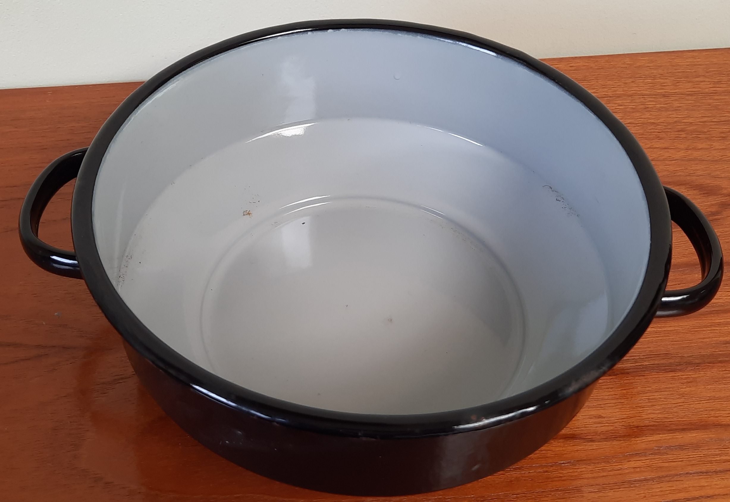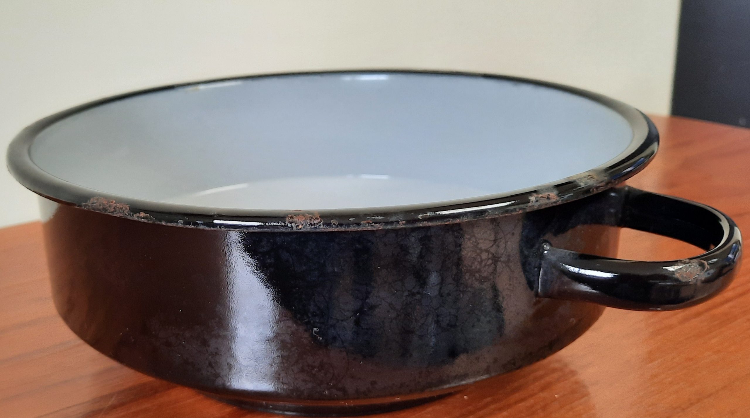 Zwarte schaal, aan de binnenkant grijs doorsnee 22 cm hoogte 8 cm